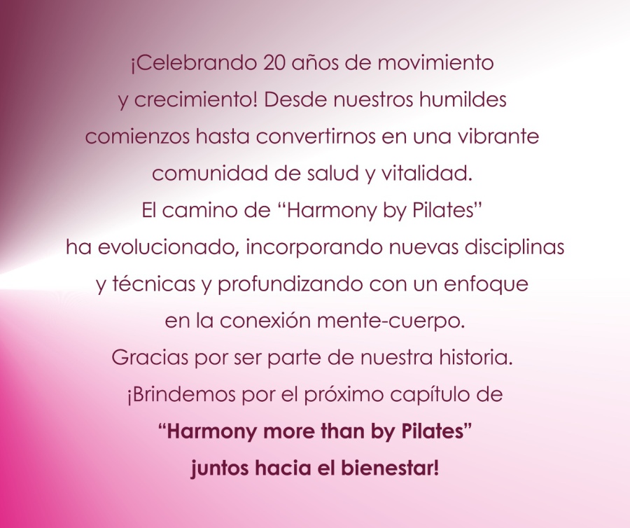 Hace veinte años Harmony by Pilates abrió sus puertas en Alella para ofrecer Pilates de alta calidad y nivel a sus ciudadanos. De la mano de su directora, Anne Marie Roche, este estudio del Maresme inició su andadura en el año 2005. Desde entonces y hasta hoy Harmony by Pilates ha ayudado a muchas personas a mejorar o mantener su salud gracias a las clases impartidas por Anne Marie y adaptadas para cada persona según sus necesidades específicas.